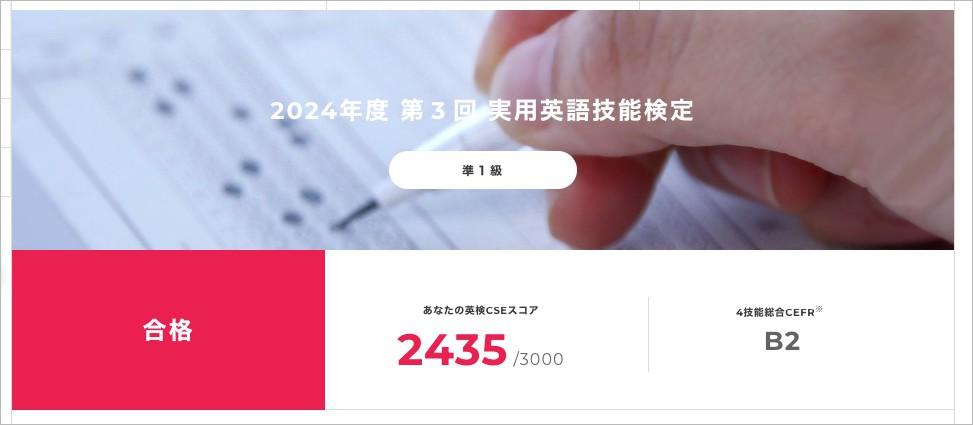 英検では「CSE(Common Scale for English)」という共通尺度で合否を判定しています。