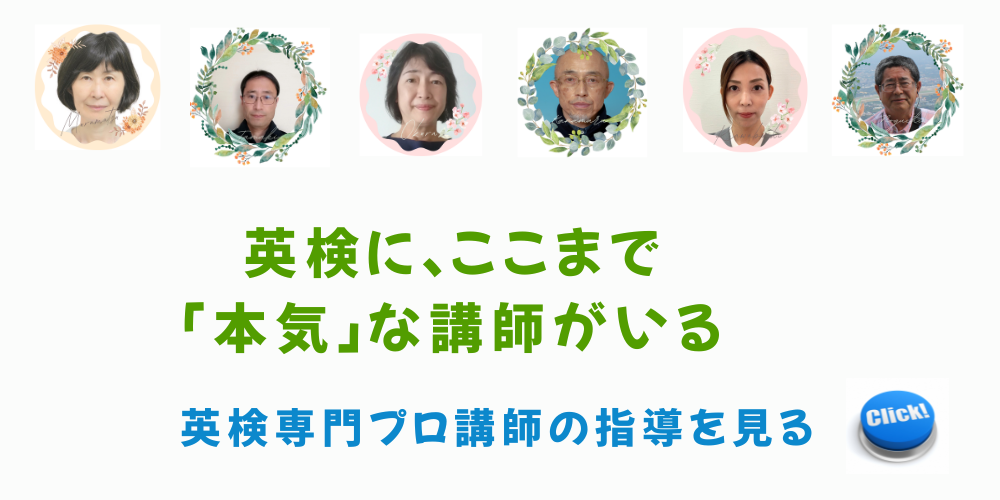2026年02月28日 【英検2級・準1級対策|無料体験を終了する理由と今後の個別相談について】 英検無料体験を終了する理由|3月から有料個別相談へ移行します これまで実施しておりました「無料体験」ですが、 本日をもって終了させていただくことになりました。 突然の変更に感じられるかもしれませんが、 記事を読む 2026年02月26日 【英検2級は“いつ取るか”で価値が変わる】 英検2級を持っている中学生は、年々増えています。 ですが、本当に大切なのは 「持っているか」ではなく、「いつ取得したか」です。 英検2級は、ただの資格ではありません。 取得タイミング次第 記事を読む 2026年02月25日 【英検合格に差がつく親の声かけとは?合格を遠ざける家庭の習慣とは】 英検で差がつく家庭の声かけとは? 「なんでできないの?」その一言が、 英検の合否に影響しているとしたらどう思われますか? 英検指導をしていると、同じ教材・同じ学習時間でも 伸びる子と伸び悩む子がいます 記事を読む 2026年02月22日 【英検は短期集中と定期レッスンどちらが伸びる?】 当スクールは短期集中型 と 定期的に積み重ねるプライベートレッスン型 の2種類があります。 「2ヶ月で準一級を目指したい」「通常レッスンで着実に力を伸ばしたい」 保護者の方からも、よくご相談をいただき 記事を読む 2026年02月22日 【英検とは何か?】 英検とは何か? 英検は、 公益財団法人 日本英語検定協会 が実施している、日本で最も広く認知された英語検定です。 最大の特徴は、 読む・聞く・書く・話すの4技能を総合的に測ること。 学校の定期テストと 記事を読む 2026年02月20日 【英検は本当に必要?将来役に立つ?】 英検は本当に必要?将来役に立つ?TOEICとの違いも解説 英検は、日本で最も歴史のある英語資格試験の一つです。 運営:公益財団法人 日本英語検定協会 多くの中学・高校・大学で評価対象となっています。 記事を読む 2026年02月18日 【英検採点方法を完全解説|CSEスコアと合格基準の仕組み】 英検は何問正解すれば合格?採点方法を分かりやすく解説 「英検は何点で合格するの?」 「ライティングはどうやって採点されるの?」 この疑問は非常に多いです。 結論から言うと、 英検は単純な正答率では合否 記事を読む 2026年02月15日 【大切なお子さまの学びを、丁寧に支え続けるために】 私たちが大切にしていること 英検合格はもちろん大切です。 しかし、それ以上に大切にしているのは ・自分で考える力 ・最後までやり抜く姿勢 ・努力を積み重ねる習慣 目先の結果だけでなく、 その先の人生に 記事を読む 2026年02月14日 【 なぜ、あなたは英検の挑戦を諦めた?】 なぜ、あなたは英検の挑戦を諦めたのか 「うちの子にはまだ早いと思って」 「忙しくて準備ができなくて」 「前回落ちて自信をなくしてしまって」 本当に、それだけでしょうか。 英検に挑戦する前 記事を読む 2026年02月13日 【コースの違いについて】 🔹 比較一覧 項目 プライベートレッスン オーダー短期集中 期間 最低3ヶ月以上 3ヶ月未満(期間指定可) 時間 60分/回(マンツーマン) ご希望の長さ(マンツーマン) 回数 月4回 ご希望の回数 記事を読む 1 / 812345...»最後 »